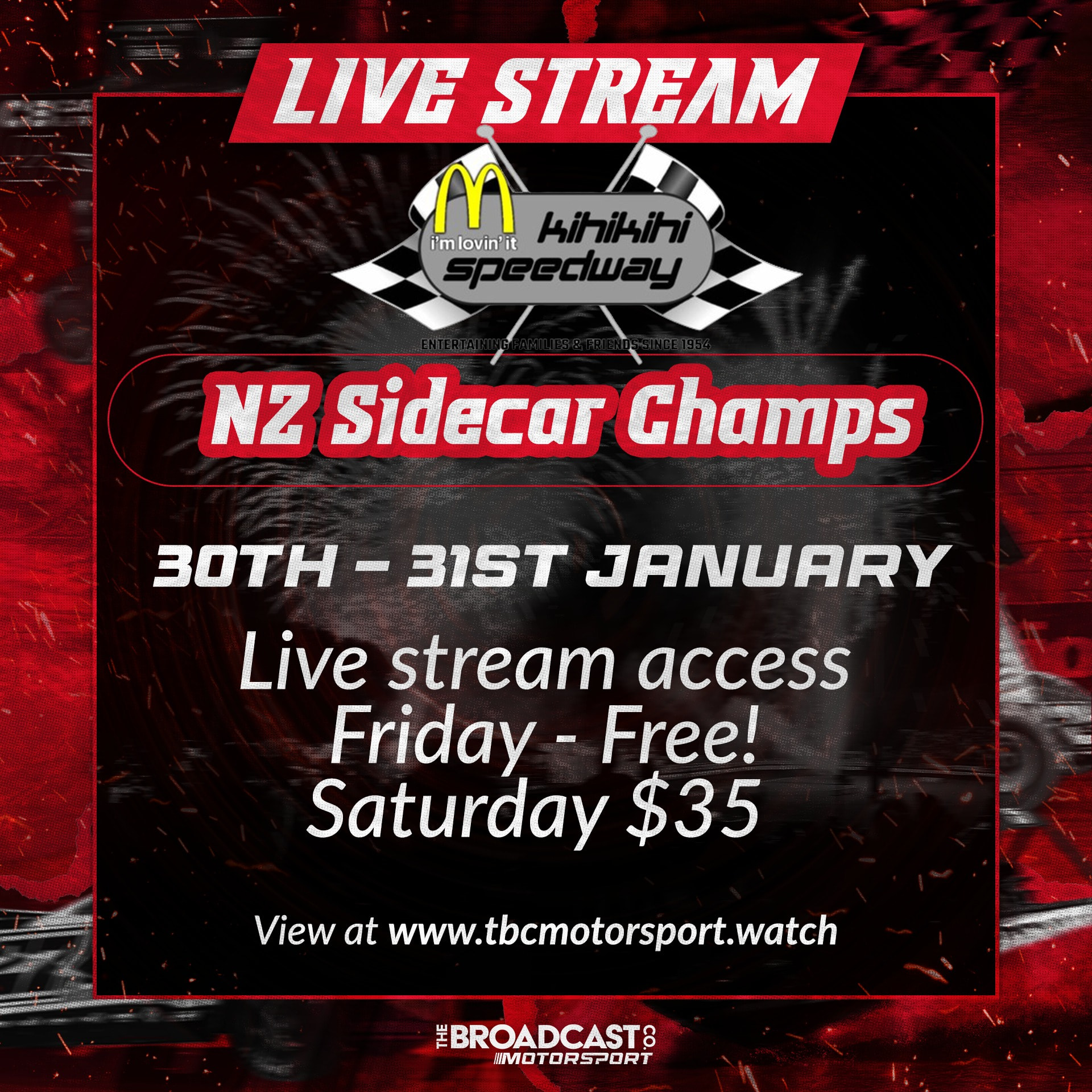 It’s NZ Sidecar Champs time down at Kihikihi Speedway and Friday night’s stream will be FREE!